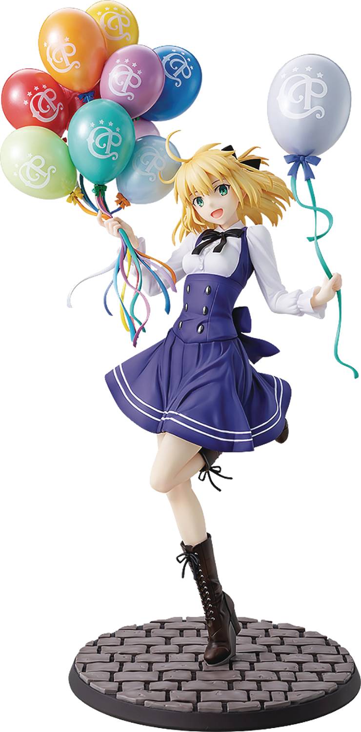 From Kadokawa. From the popular smartphone game Fate/Grand Order comes a 1/7-scale figure of Saber/Altria Pendragon (Lily) in her Festival Portrait outfit! The figure, based on an illustration from Fate/Grand ORder Fes. 2019 Chaldea Park, features Saber handing out balloons as a cast member at Chaldea Park. Her innocent smiling face has been faithfully captured, perfectly conveying her excitement in figure form. Her balloons in both hands, dynamically sculpted ponytail hair and the various textures of her outfit have been perfectly preserved in figure form!
