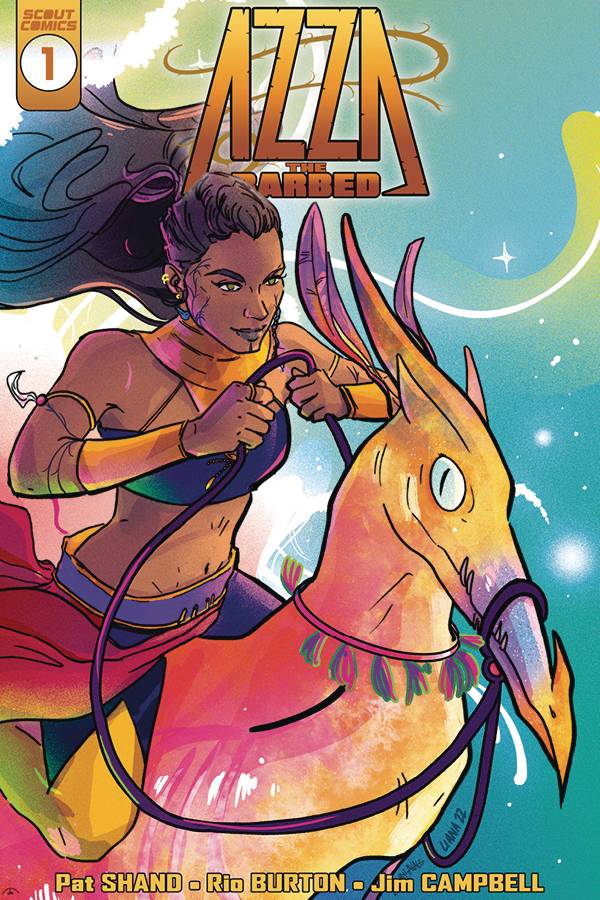 Retailer Incentives: Retailers purchasing ten copies of Cover A (1:10) of AZZA THE BARBED #1 can unlock unlimited copies of Cover B by LIANA KANGAS. Please reach out to your CS rep with questions about retailer incentives.