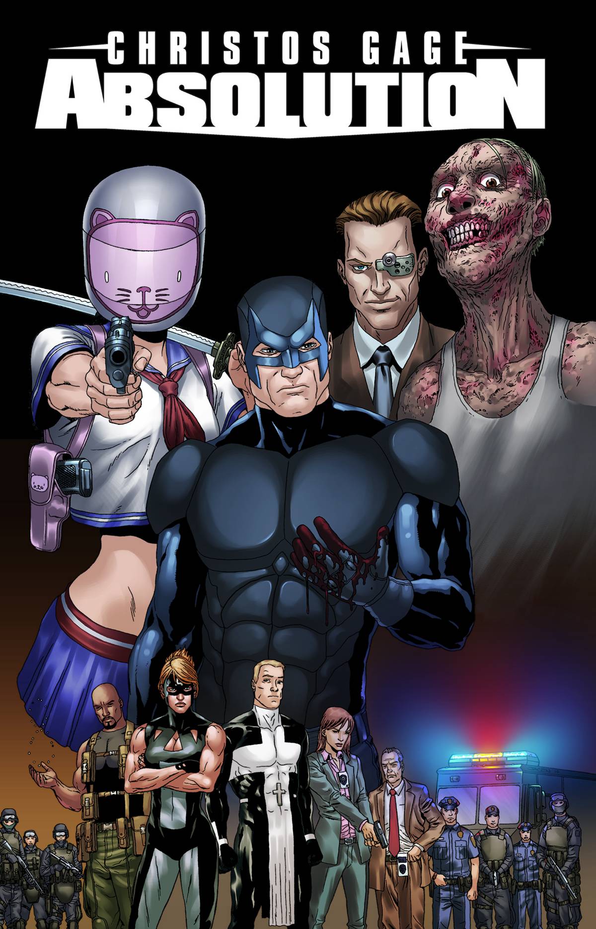 Absolution introduces John Dusk, a superhero in a world where they're a sanctioned arm of law enforcement. But this veteran hero has been scarred by his exposure to man's infinite capacity for evil, and he's seen one too many perpetrators escape justice. One day he crosses the line - lets a murderer die - and discovers it feels good. Surrounded by sociopaths, both human and superhuman, who he knows will prey on others if they're not stopped - permanently - how far will he go, knowing every step he takes puts him further on a collision course with his teammates Alpha and The Servant, not to mention his homicide detective girlfriend?