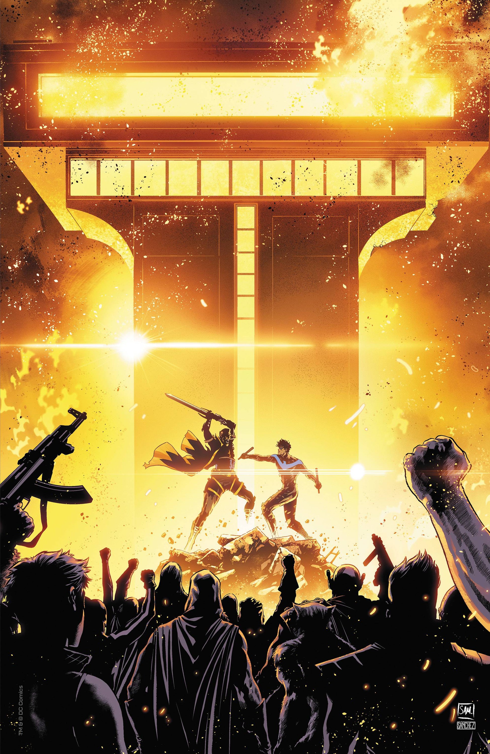 THE HOUSE OF NIGHTWING BURNS! As the good people of the world mourn the loss of the Justice League, the forces of evil have seized the opportunity to wreak havoc in a world without its heroes! Leading the charge is a super-powered Slade Wilson...but this time there's something dark fueling his rage. With a massive army laying siege to Titans Tower, only Nightwing will have what it takes to stand in the way of Deathstroke's forces-but is this a fight Dick Grayson can win? Look, up in the sky-reinforcements are on the way! It's a bird! It's a plane! It's...uh-oh...it's Cyborg Superman. The world burns as Pariah and the Great Darkness make their play for planet Earth in this jaw-dropping second issue!
